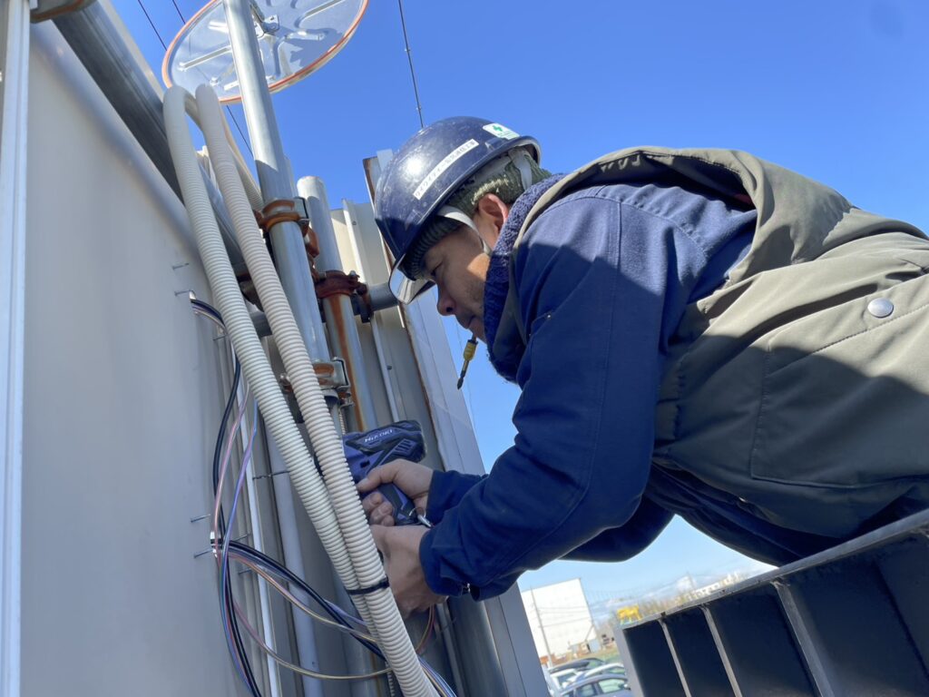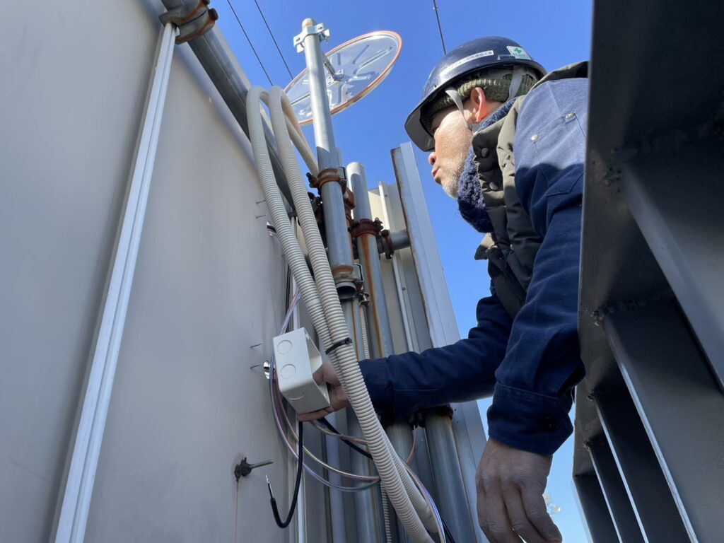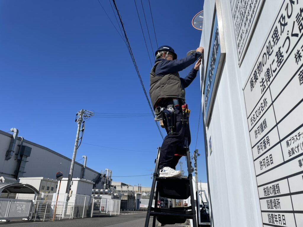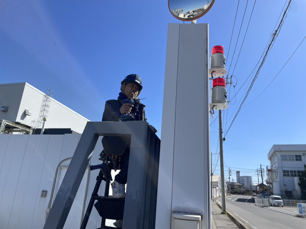 某自動車解体リサイクル工場さまにて車両出庫注意喚起システム工事3日目